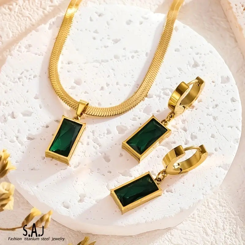 Elevate your style with our Women’s 3-Piece Green Zirconia Snake & Collarbone Jewelry Set. Crafted from high-quality stainless steel, this elegant jewelry collection features a striking snake-shaped necklace and matching earrings adorned with vibrant synthetic zirconia. Perfect for formal events, banquets, or everyday wear, these versatile pieces add a sophisticated touch to any outfit. Designed for durability and style, our jewelry set offers a beautiful and modern way to showcase your personal elegance.